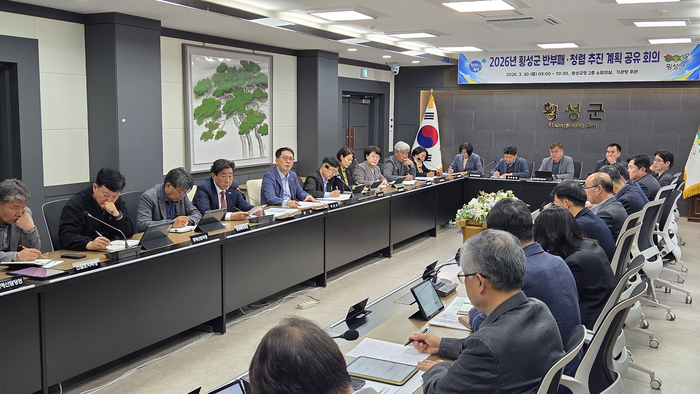 [스포츠서울ㅣ김기원 기자] 횡성군은 30일 군청 소회의실에서 김명기 횡성군수 주재로 국·과·소장 전원이 참석한 가운데, ‘2026년 횡성군 반부패·청렴 추진 계획 공유회의’를 개최했다.
