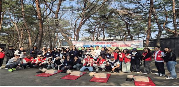 이번 캠페인에서는 전문 강사의 지도 아래 가슴압박 중심의 심폐소생술 실습이 진행되었으며, 누구나 쉽게 참여할 수 있는 체험형 교육으로 운영되어 관광객과 직원들의 높은 관심과 참여를 이끌어냈다.
