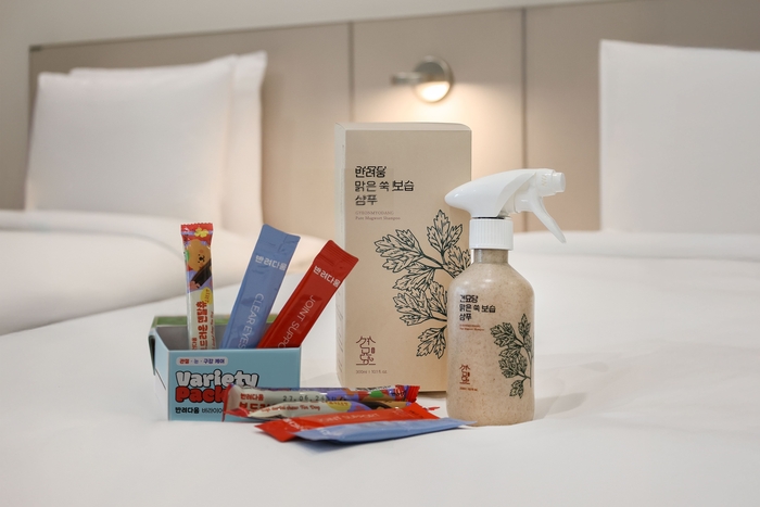 특히 이번 패키지는 식품 전문 기업 농심의 펫 케어 브랜드 ‘반려다움’과 손을 잡았다. 투숙객에게는 반려견의 구강 관리를 위한 영양 간식을 비롯해 눈과 관절 건강에 도움을 주는 기능성 영양제 세트가 제공되어, 여행 중에도 반려견의 건강을 꼼꼼히 챙길 수 있도록 구성했다.