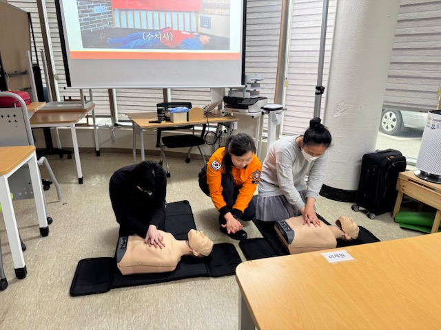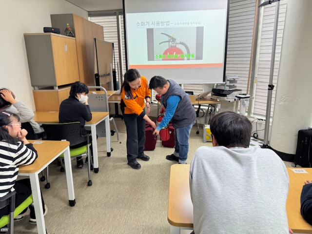 이날 교육은 대상자의 특성과 눈높이를 고려한 맞춤형 프로그램으로 진행되었으며, 특히 화재 발생 시 신속하고 정확한 초기 대응을 돕기 위해 ▲소화기 사용법 ▲심폐소생술(CPR) 등 응급처치 요령을 중심으로 이론과 실습을 병행해 진행됐다.
