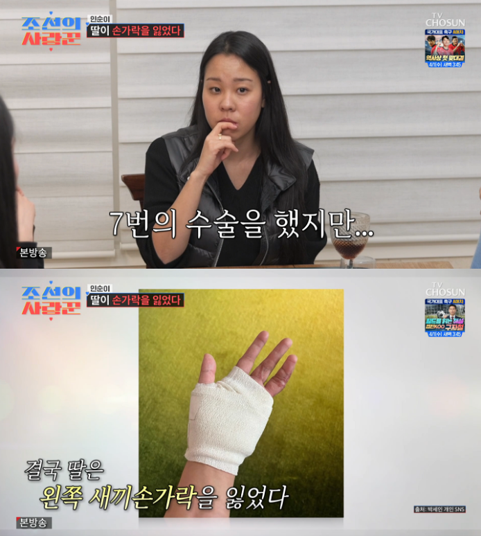 박세인 씨는 “수술 후에 손가락에 혈액순환이 안 돼서 괴사가 시작됐다”며 “일주일 후에 한국으로 돌아와 수술을 7번이나 받았지만 새끼손가락을 잃었다”고 고백했다.