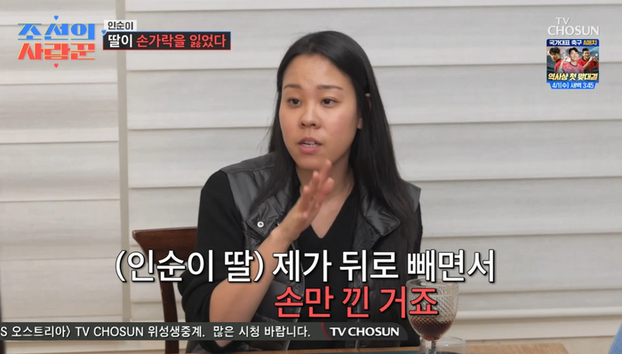 인순이는 “딸이 다쳤다고 했을 때 크게 다친 줄 몰랐다. 다친 손을 보는 데 마음이 찢어질 것 같다”며 “내가 울면 딸이 더 힘들어할까 봐 울지 않고 버텼다. 내가 버티는 건 진짜 잘하는데 버틴다는 게 이렇게 힘든지 몰랐다”며 눈물을 보였다.