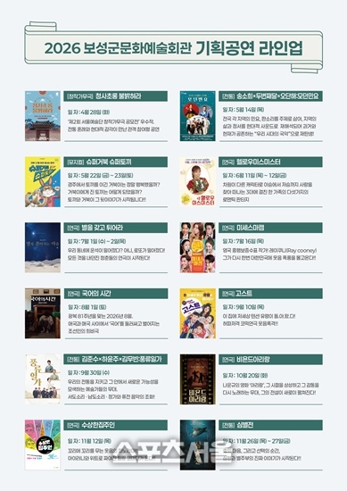[스포츠서울∣조광태기자] 전남 보성군은 31일 보성군문화예술회관이 2026년 기획 공연 라인업을 확정하고, 공모사업 선정을 통해 국비 총 2억 2,400여만 원을 확보했다고 밝혔다.