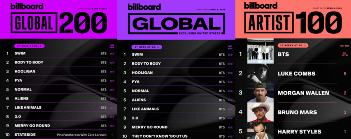 방탄소년단은 신곡 ‘Swim’으로 빌보드 핫100 1위, 빌보드 200 1위를 동시에 차지하며 전 세계 음악 시장을 놀라게 했다.