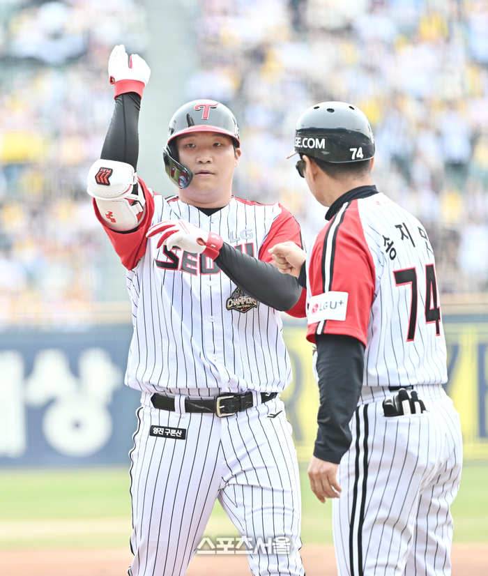 결국 교체다. 이영빈이 대주자로 들어갔다. 문보경은 스스로 걸어 나갔다. 그런데 뭔가 불편한 듯 허벅지 쪽을 계속 만지는 모습을 보였다.