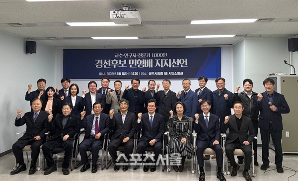 [스포츠서울┃조광태기자] 전남·광주 지역 대학교수와 연구자, 전문가 1000명이 40년 만에 맞이하는 행정 통합의 성공을 위해 더불어민주당 전남광주통합특별시장 경선 후보인 민형배 국회의원(광주 광산구을)에 대한 지지를 공식 선언했다.