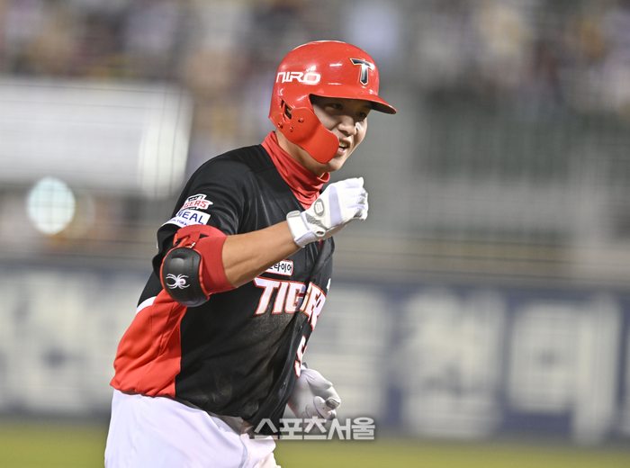 KIA 오선우가 1일 서울 잠실구장에서 열린 2026 KBO리그 LG전 5회초 우월홈런을 날린 후 고영민 코치와 하이파이브를 하고 있다.