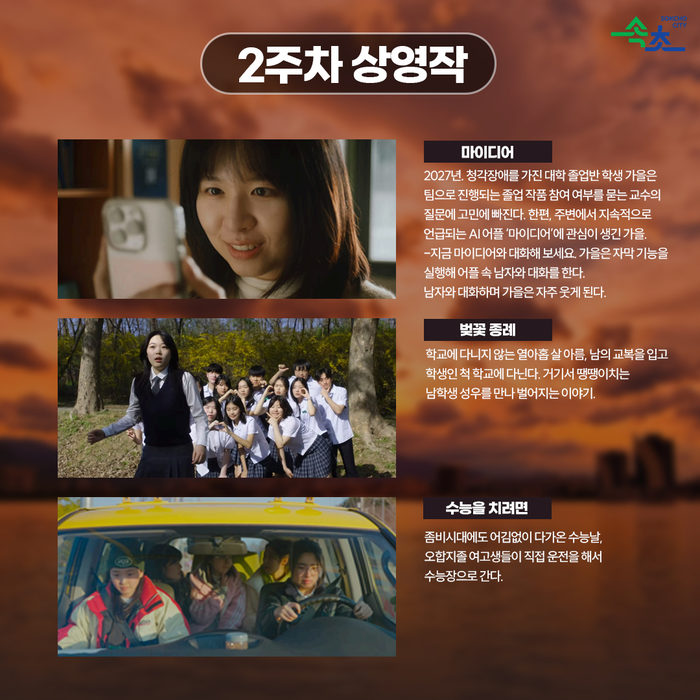 속초시 관계자는 “속초 선셋시네마는 아름다운 자연경관과 영화, 시민의 일상이 어우러지는 새로운 문화 프로그램”이라며 “앞으로도 시민과 관광객이 속초에서만 누릴 수 있는 특별한 문화 경험을 즐길 수 있도록 지속적으로 운영해 나가겠다”고 말했다.