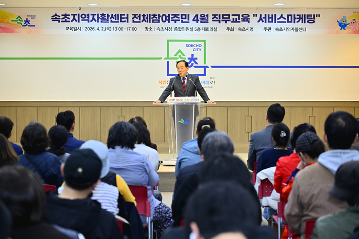 [스포츠서울ㅣ김기원 기자]속초지역자활센터(센터장 최진)는 자활근로 참여자의 서비스 역량 강화와 자활사업 경쟁력 향상을 목표로 2일 시청 대회의실에서 사업 참여자를 대상으로 서비스 마케팅 직무교육을 실시했다고 밝혔다.