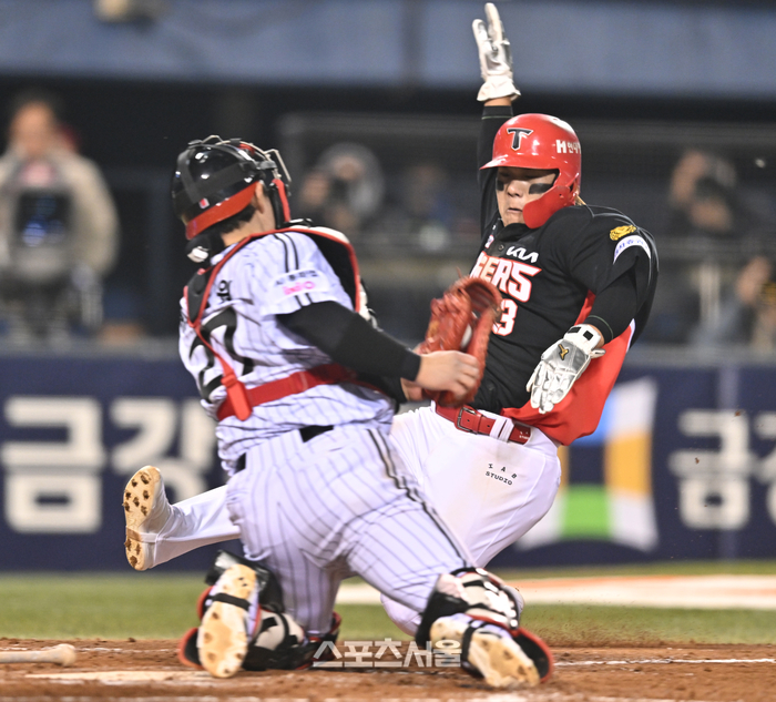 2회말 LG가 곧바로 반격했다. 선두타자 문보경이 좌전 안타를 때렸다. 박동원이 볼넷을 골라냈다. 문성주의 1루수 땅볼로 1사 1,3루. 천성호의 안타가 2루수 김선빈 옆을 절묘하게 빠져나갔다. 1-1이다.