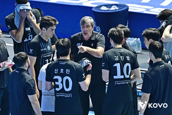 필립 블랑 감독이 이끄는 현대캐피탈은 2일 인천계양체육관에서 열린 대한항공과 진에어 2025~2026 V리그 남자부 챔피언결정전 1차전에서 세트 스코어 2-3(19-25 25-19 25-23 20-25 11-15)로 패했다. 역대 챔피언 결정전 20차례 중 1차전을 승리한 팀이 우승한 건 15차례다. 75% 확률이다.