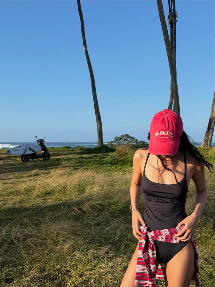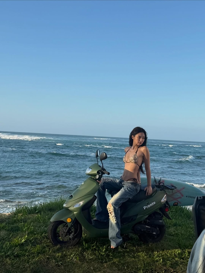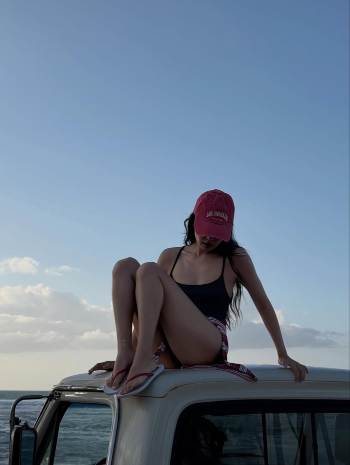사진에서 제니는 블랙 원피스 수영복에 레드 캡을 매치하거나, 레오파드 패턴 비키니에 데님 팬츠를 함께 스타일링하는 등 자유롭고 트렌디한 무드를 연출했다. 또 스쿠터와 서핑보드가 놓인 해변을 배경으로 포즈를 취하며 여유로운 휴양지 분위기를 완성했다.
