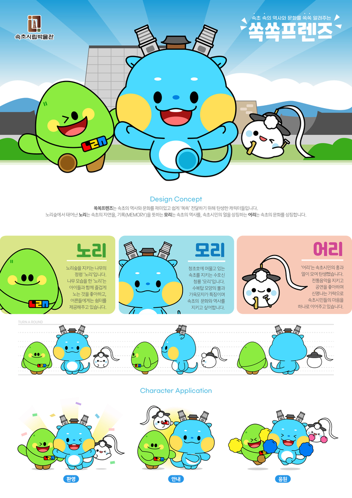 이병선 속초시장은 “속초시립박물관에서 처음으로 진행한 캐릭터 공모전에 많은 관심을 두고 참여하신 모든 분께 감사드린다”며 “속초시립박물관의 증축 리모델링과 맞춰 캐릭터가 박물관의 새 얼굴로 다양하게 활용되길 바란다”고 전했다.