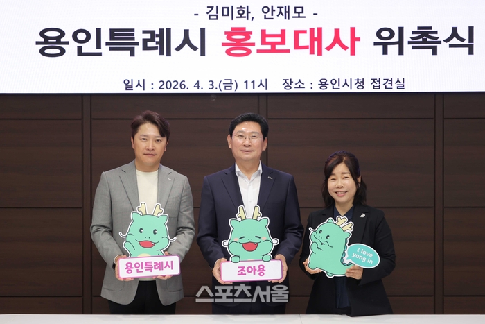 〔스포츠서울│용인=좌승훈기자〕이상일 용인특례시장은 3일 시청 접견실에서 용인 시민인 방송인 김미화씨와 배우 안재모씨를 홍보대사로 위촉했다.