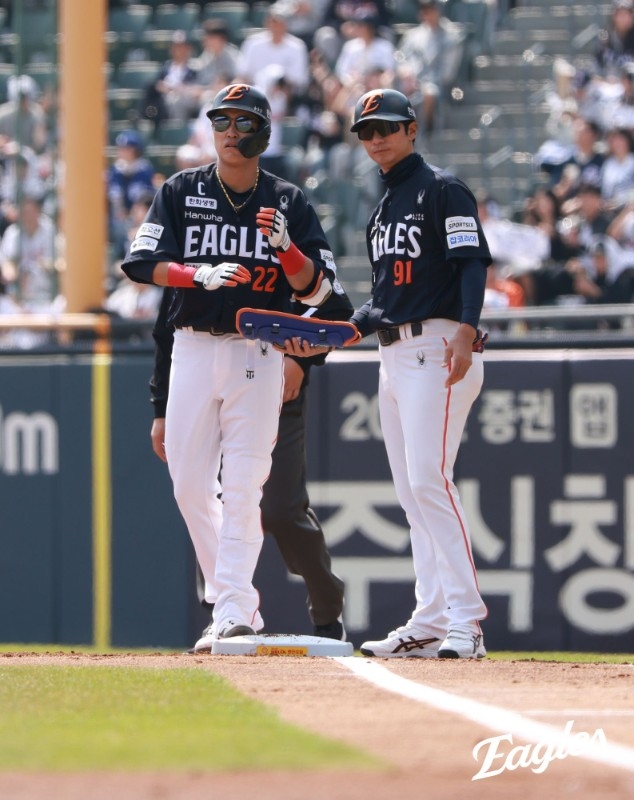 5회초 페라자 우전 안타, 문현빈 볼넷, 강백호 2루수 실책 등으로 1사 만루 기회가 왔다. 채은성 좌익수 희생플라이, 하주석 중전 적시타로 5-0으로 달아났다. 최재훈 볼넷으로 만루가 계속됐다. 이도윤이 밀어내기 몸에 맞는 공을 기록, 6-0이 됐다.