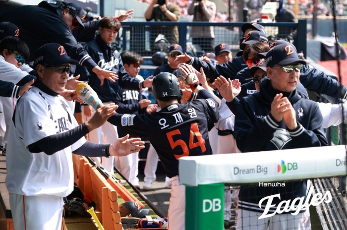 타선에서는 문현빈이 선제 결승 2루타를 때리는 등 1안타 2타점 2득점 기록했다. 요나단 페라자가 3안타 3득점으로 날았다. 강백호가 2안타 2타점, 하주석이 2안타 3타점 더했다. 채은성도 2안타 1타점이다. 오재원도 안타 하나 날렸다.