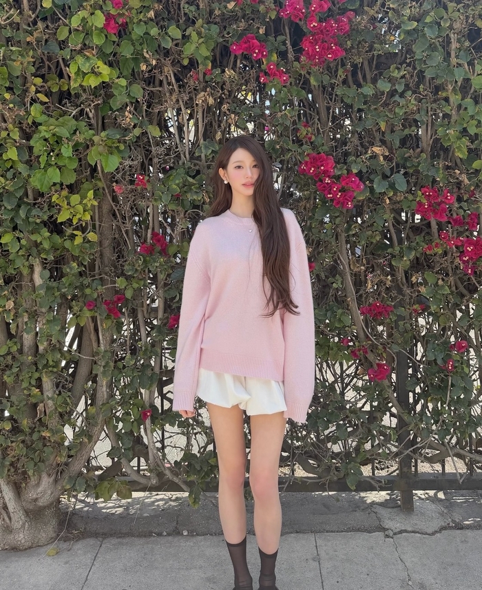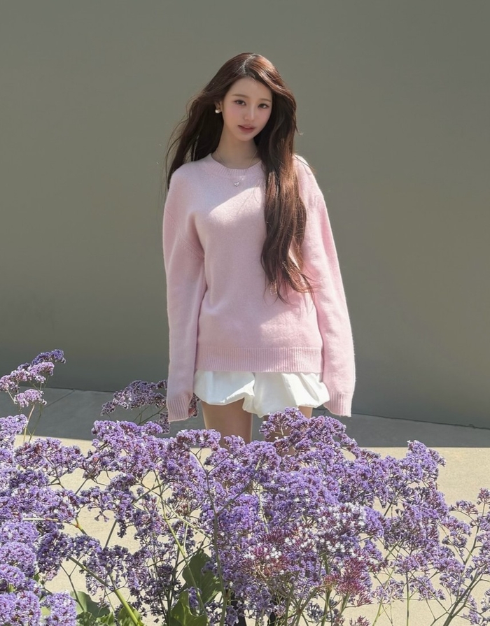 장원영은 4일 자신의 SNS를 통해 꽃들이 만개한 야외에서 촬영한 여러 장의 사진을 게재했다. 공개된 사진 속 장원영은 화사한 연분홍색 니트와 화이트 숏팬츠를 매치해 사랑스러우면서도 세련된 ‘스프링 룩’의 정석을 선보였다.