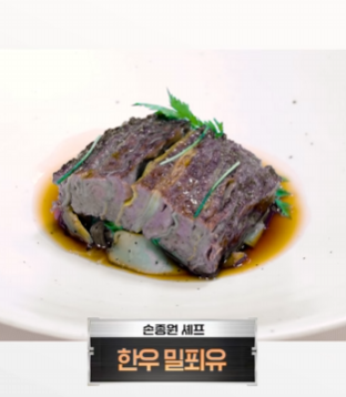 그가 선보인 메뉴는 한국 식재료와 프랑스 미식의 조화를 담은 ‘한우 밀푀유’. 프랑스의 거장 셰프 야닉 알레노의 소고기 밀푀유에서 착안한 이 요리는, 이재명 대통령의 고향인 안동 한우를 사용해 의미를 더했다.