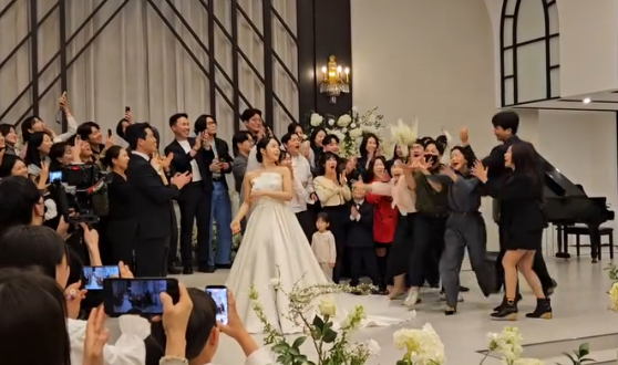 특히 이날 결혼식에는 ‘나는 솔로’를 연출한 남규홍 PD가 주례를 맡아 눈길을 끌었다. 남 PD는 촬영 현장처럼 결혼식장에서도 직접 메가폰을 잡고 특유의 목소리로 주례사를 진행하며 두 사람의 앞날을 축복하는 특별한 장면을 연출했다.