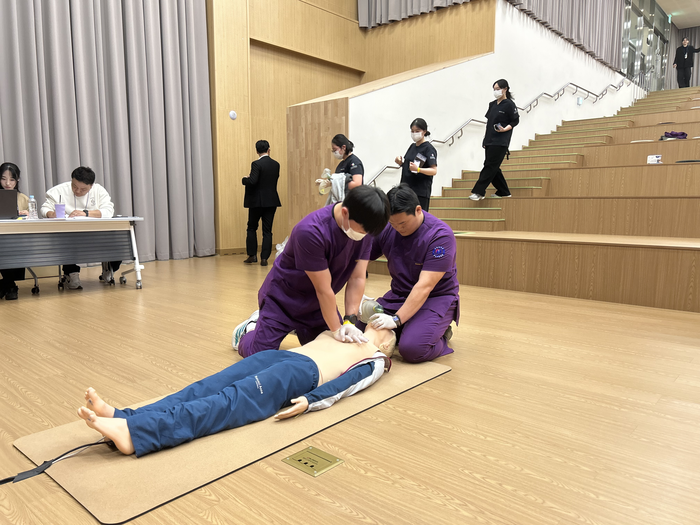 참가팀들은 신속하고 정확한 심폐소생술 수행 능력과 팀원 간의 협업 역량을 집중적으로 평가받았으며, 긴박하게 주어지는 상황 속에서도 침착하게 대응하며 높은 수준의 전문성과 숙련도를 유감없이 선보였다.