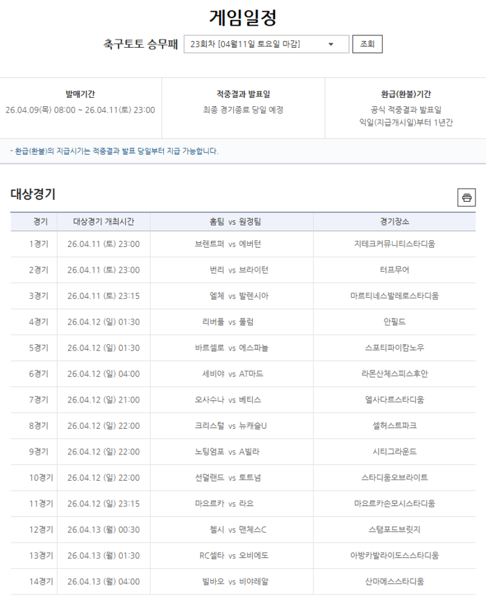 한국스포츠레저 관계자는 “이번 회차는 무승부와 원정팀 강세가 동시에 나타나며, 참가자들의 승부 예측이 난항을 겪었다”며 “EPL과 라리가의 주요 빅매치가 포함된 23회차에도 많은 관심과 참여를 부탁드린다”고 전했다.