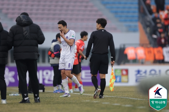 두 번째는 3라운드 강원FC(1-1 무)전. 그는 후반 17분 레드카드를 받았다. 의도가 있지 않고 살짝 미끄러지며 스터드가 상대 발목을 가격한 것. 그렇게 2경기를 결장했고, 팀은 2연패에 빠졌다.