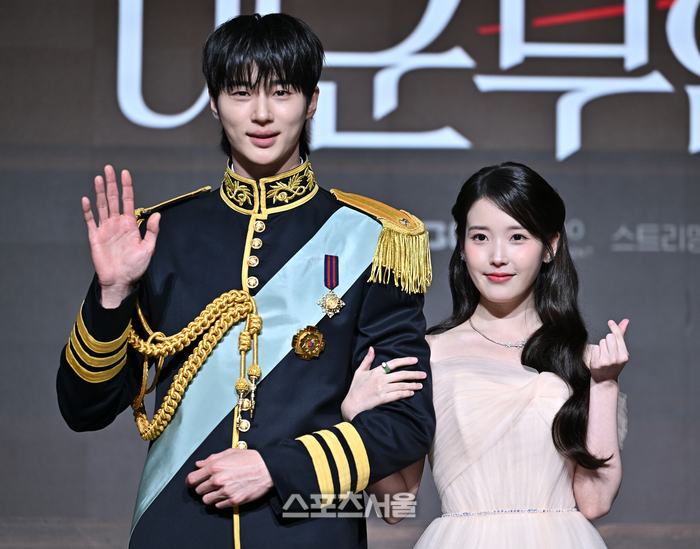 연예 | 방송 [포토] 변우석-아이유 ‘꿀 떨어지는 부부’ 입력2026-04-06 15:09:46 북마크 페이스북 트위터 SNS 더보기 가글자크기설정 인쇄 SNS 더보기 닫기 네이버밴드 네이버블로그 URL복사 글자크기 설정 메뉴 닫기 글자크기 설정 시 다른 기사의 본문도동일하게 적용됩니다. 가 가 가 가 가 변우석, 아이유가 6일 조선 팰리스 서울 강남에서 열린 MBC 새 금토드라마 ‘21세기 대군부인’ 제작발표회에서 포즈를 취하고 있다.2026. 4. 6.최승섭기자 thunder@sportsseoul.com 기사추천 0