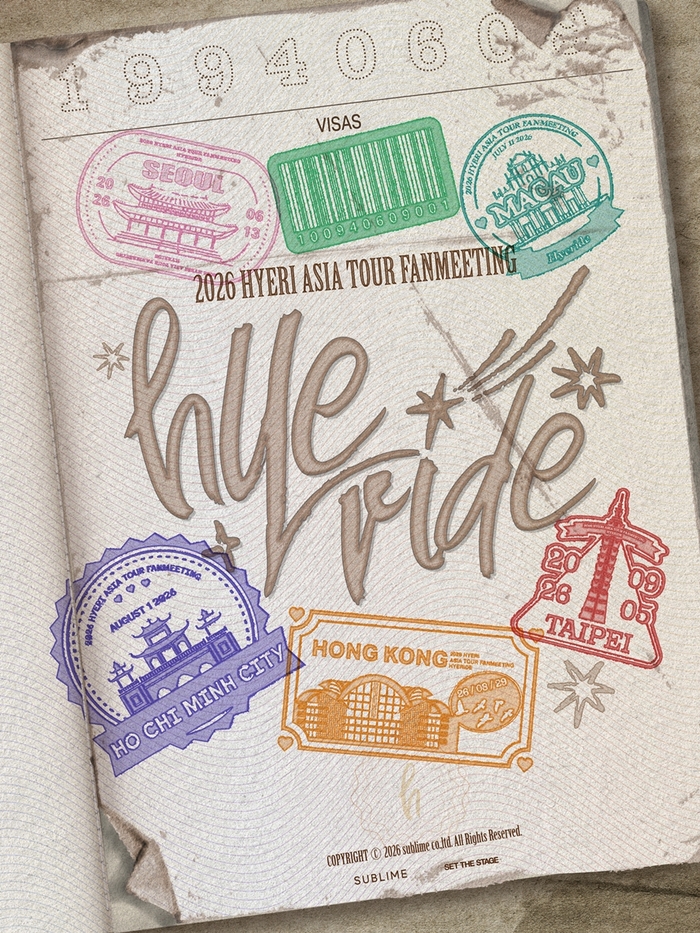 혜리 소속사 써브라임은 6일 공식 SNS를 통해 ‘2026 HYERI ASIA TOUR FANMEETING <HYERIDE>’ 티저 포스터를 공개하고 투어 개최 소식을 알렸다. 공식 포스터에 따르면 이번 팬미팅 투어는 ‘혜리와 함께 떠나는 여행’이라는 콘셉트로 진행된다.