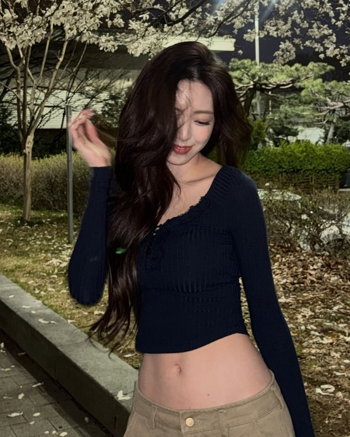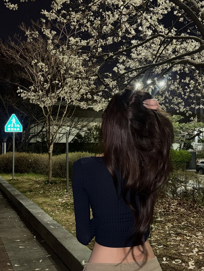유나는 6일 자신의 사회관계망서비스(SNS)를 통해 밤벚꽃이 만개한 야외에서 촬영한 여러 장의 사진을 공개했다. 사진 속 유나는 벚꽃 나무를 배경으로 여유로운 포즈를 취하며 화사한 미모를 뽐냈다.