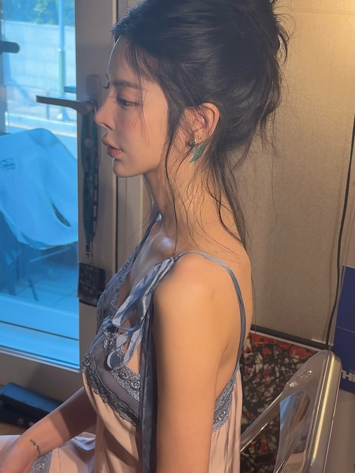 장재인은 6일 자신의 사회관계망서비스(SNS)를 통해 작업실로 보이는 공간에서 촬영한 여러 장의 사진을 게재했다. 공개된 사진 속 장재인은 레이스 장식이 돋보이는 연한 핑크와 블루 톤의 슬립 의상을 입고 자유로운 포즈를 취하고 있다.