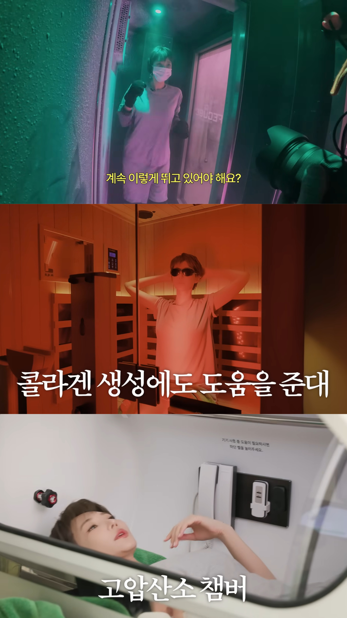 사우나에서 나와 고압산소 챔버로 이동한 고준희는 “이건 몸 구석구석 산소를 공그배 조직 회복, 염증 완화에 도움을 준다”고 말하며 한 시간가량 관리를 받았다.