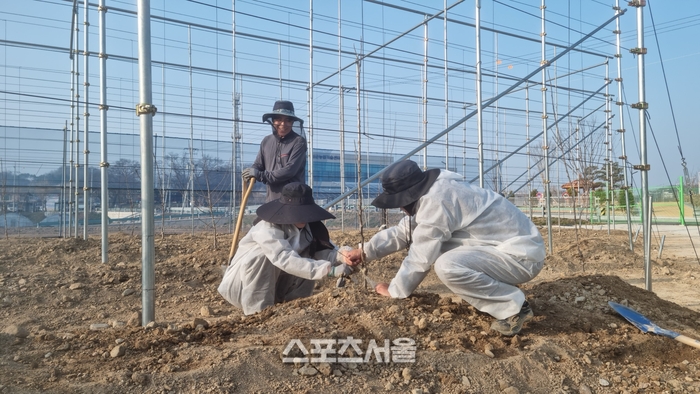 [스포츠서울 l 임실=고봉석 기자] 전북 임실군이 지역 특화 작목인 복숭아와 사과의 경쟁력 강화와 노동력 문제 해결을 위해 미래형 과수 실증 시험포 조성을 완료하고 본격적인 실증 운영에 돌입했다.