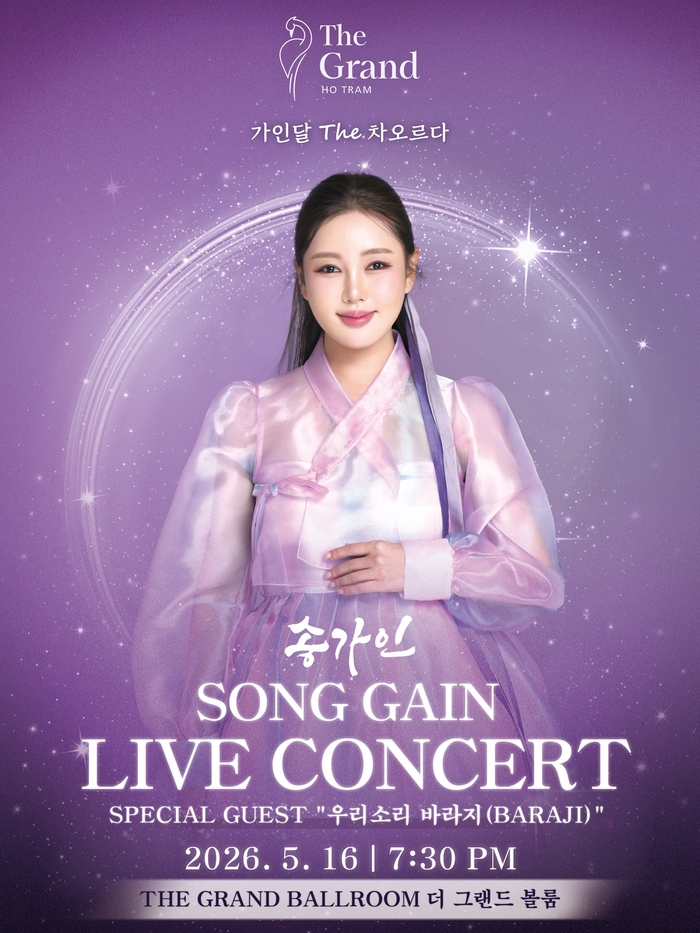 송가인은 8일 자신의 공식 SNS를 통해 오는 5월 16일 베트남 호치민 ‘더 그랜드 호짬(The Grand Ho Tram)’에서 라이브 콘서트 ‘가인달 The 차오르다’를 개최한다고 밝혔다. 이번 공연은 베트남 현지 팬들과 직접 소통하며 한국 정통 트로트의 깊이를 알리는 자리가 될 전망이다.
