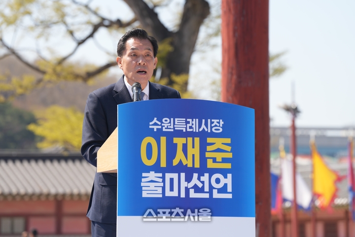 〔스포츠서울│수원=좌승훈기자〕이재준 수원특례시장은 8일 화성행궁 광장에서 기자회견을 열고 민선 9기 지방선거 출마를 선언했다.