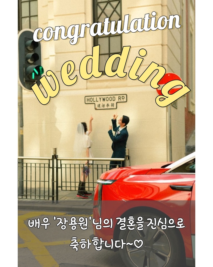 함께 공개된 사진 속에는 홍콩의 윈덤 스트리트(Wyndham St) 표지판 아래에서 예비 신부와 함께 행복한 미소를 지으며 손을 흔드는 장용원의 모습이 담겼다. 수트 차림의 장용원과 웨딩드레스에 부케를 든 예비 신부의 다정한 모습이 시선을 사로잡는다.