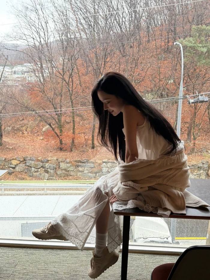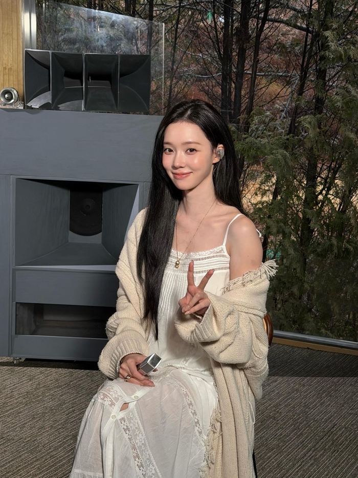 특히 눈길을 끄는 것은 윈터의 패션이다. 윈터는 레이스 디테일이 돋보이는 화이트 시스루 원피스에 포근한 아이보리색 가디건을 매치해 가녀린 몸매를 강조했다. 과감한 시스루 소재로 은근한 섹시미를 드러내면서도, 특유의 투명한 피부와 긴 생머리가 어우러져 청초한 분위기를 자아냈다.