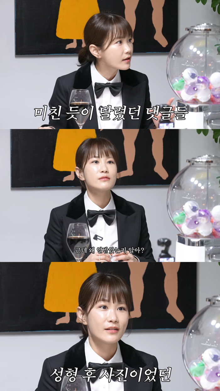 김지민은 “어떤 카페에서 ‘김지민 성형 전’이라는 게시글과 함께 내 사진이 올라왔다”며 “댓글이 천 개 가까이 달렸다. ‘성형 전 XX 못생겼다’고 하더라”라고 말했다.