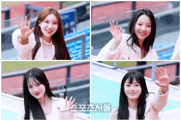 10일 오후 잠실, ‘2026 프로야구’ LG 트윈스와 SSG 랜더스의 경기에 앞서 SSG 치어리더들이 리허설 후 반갑게 손인사하고 있다. 오전만해도 비가 내리는 등 불안정한 잠실이었다. 하지만 오후들어 비가 그치고 경기는 정상 진행되며, 그라운드의 활기를 되찾은 잠실이었다. 하루 전 프로야구 5경기 전체가 취소된 바 있다.