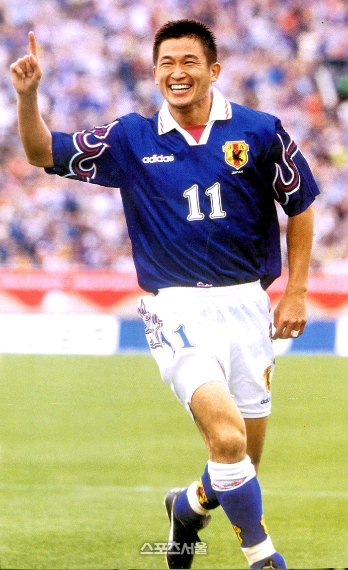 일본 대표팀 소속으로 89경기 55골을 기록했다. 1990년대 황선홍(58) 대전하나시티즌 감독, 홍명보(57) 국가대표팀 감독 등과 한일전에서 여러 차례 맞붙었다.