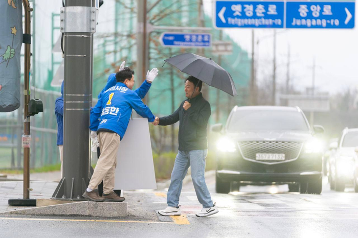 [스포츠서울ㅣ춘천=김기원 기자]육동한 더불어 민주당 춘천시장 예비후보는 10일 저녁 공지 사거리에서 저녁 인사를 마치고, 오늘부터 시작되는 풍물시장 야시장 ‘춘풍야장’에서 시민들과 함께 즐거운 시간을 보냈다.