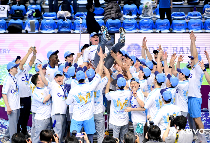 헤난 달 조토 감독이 이끄는 대한항공은 10일 인천계양체육관에서 열린 현대캐피탈과 진에어 2025~2026 V리그 남자부 챔피언 결정전 5차전에서 세트 스코어 3-1(25-18 25-21 19-25 25-23)로 승리했다. 시리즈 전적 3승2패로 우승했다.