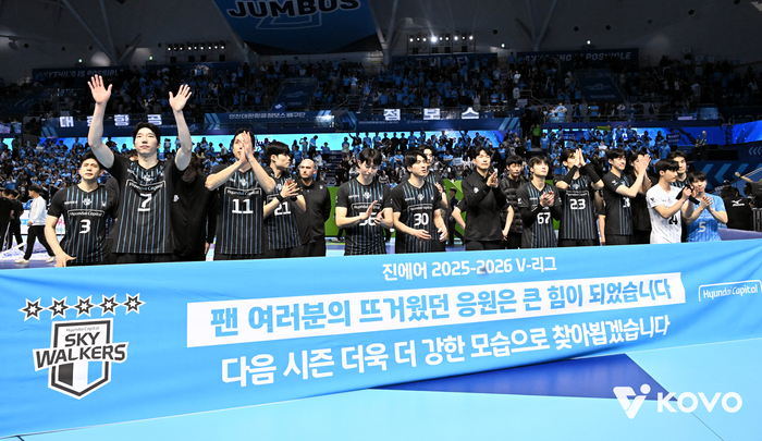 필립 블랑 감독이 이끄는 현대캐피탈은 10일 인천계양체육관에서 열린 대한항공과 진에어 2025~2026 V리그 남자부 챔피언 결정전 5차전에서 세트 스코어 1-3으로 패했다.