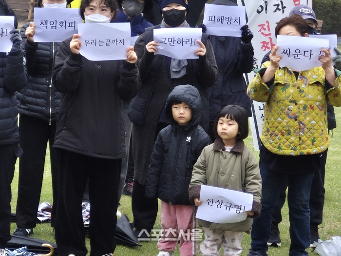 특히, 이날 집회는 비가 오는데도 불구하고 영문도 모르고 엄마의 손을 잡고 어린아이들까지 집회에 나와 보는 이들의 마음을 ‘짠’하게 했다.
