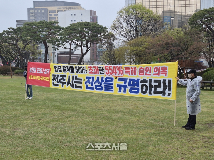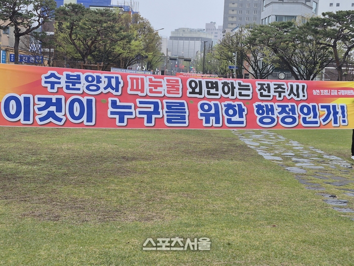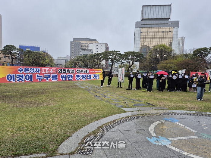 현장에서는 비를 맞으며 집회를 이어가는 수분양자들의 모습도 포착됐다. 이들은 전주시의 대응을 두고 “시간 끌기식 소극행정”이라며 강하게 반발하고 있다.