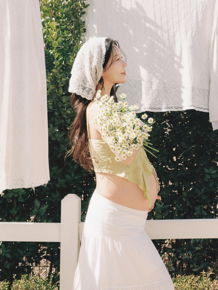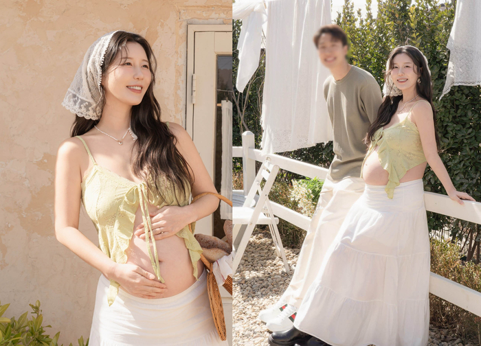 흰색 셔츠를 입은 나비는 만삭의 D라인을 아름답게 드러내며 화사한 미소를 짓고 있다. 그 옆에는 연예인 못지않은 훈훈한 외모의 남편이 나비의 배에 손을 올리거나 어깨를 감싸 안으며 듬직한 모습을 보여주고 있다. 두 사람의 눈빛과 표정에서 곧 태어날 아이를 향한 무한한 사랑과 기대가 고스란히 느껴진다.