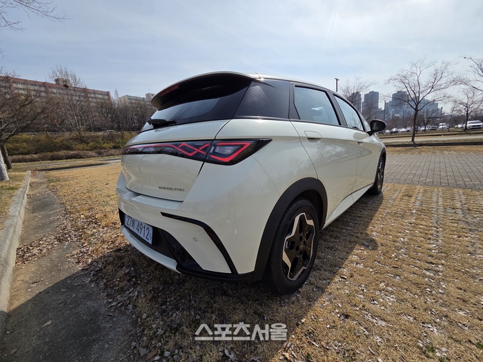 시승의 시작은 스포츠서울 본사가 있는 충무로의 좁고 복잡한 골목길이었다. 마주한 돌핀의 첫인상은 꽤 산뜻했다. BYD의 ‘해양 미학(Ocean Aesthetics)’ 디자인 언어가 적용된 이 차는 콤팩트한 차체(C-세그먼트 해치백)와 귀여우면서도 세련된 전후면 LED 램프로 도로 위에서 확실한 존재감을 뽐냈다. 좁은 골목을 빠져나갈 때 돌핀의 진가는 곧바로 드러났다. 아담한 차체는 운전의 부담을 덜어줬고, 직관적인 어라운드 뷰 시스템은 비좁은 길을 통과할 때 무척 유용했다. 양옆으로 손 한 뼘 정도만 남는 좁은 틈도 쏙쏙 빠져나가는 기동성은 도심형 데일리카가 갖춰야 할 ‘스트레스 없는 주행’의 합격점을 주기에 충분했다.
