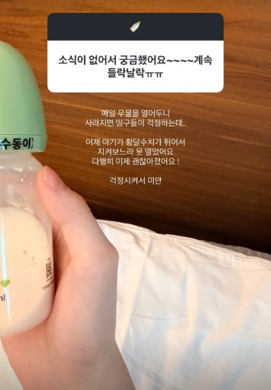 이에 대해 김소영은 “어제 아기가 황달수치가 튀어서 지켜보느라 못 열었다”며 “다행히 이제 괜찮아졌다. 걱정시켜서 미안”이라고 설명했다.