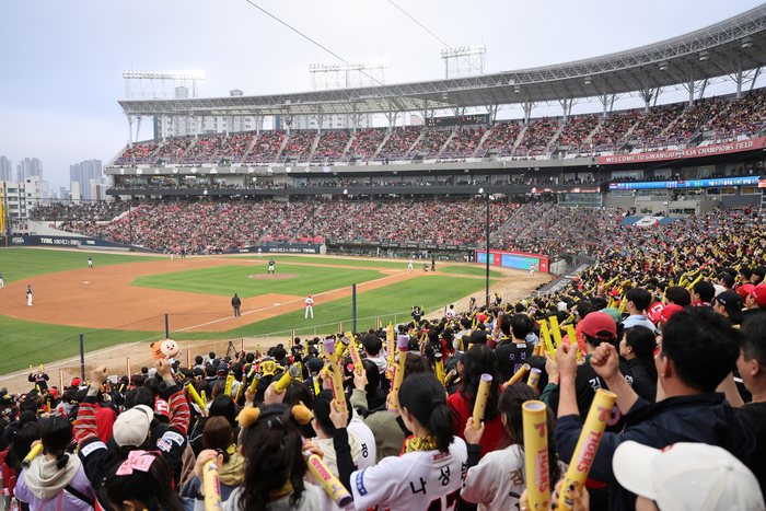 지난달 28일 정규시즌 문을 열었다. 개막전 5개 구장에서 합계 10만5878명 들어왔다. 개막 4차전도 전 구장 매진. 이틀간 합계 관중 21만1756명이다. 역대 3위다.
