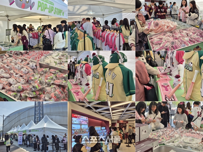 행사 기간 고척스카이돔 구름다리 위에 마련된 팝업 스토어는 이번 콜라보레이션 굿즈를 구매하기 위해 방문한 팬들로 가득 찼다.