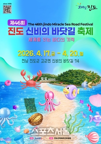 [스포츠서울∣조광태기자] 전남 진도군은 ‘세계를 잇는 바다의 기적’을 주제로 한 ‘제46회 진도 신비의 바닷길 축제’를 오는 17일부터 20일까지 4일간, 고군면 신비의 바닷길 일원에서 개최한다.